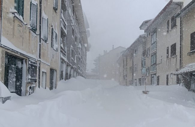 CAPRACOTTA – Non molla la presa la bufera che sta interessando Capracotta, centro altomolisano in provincia di Isernia interessato da una forte perturbazione da ieri. Gli accumuli di neve hanno raggiunto, in alcuni punti, anche un altezza che supera il metro e mezzo, le temperature sono rigide e ben oltre lo zero termico. Il paese aveva già vissuto una situazione simile il 5 marzo del 2015, quando in circa 24 ore la coltre bianca raggiunse 256 centimetri di altezza superando il record mondiale di Silver Lake in Colorado.
