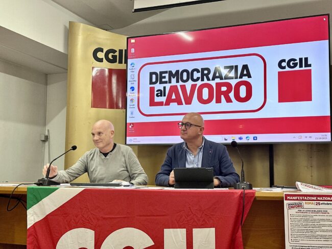 CAMPOBASSO – “Per aumentare salari e pensioni, per dire no al riarmo, per investire su sanità e scuola, per dire no alla precarietà, per una vera riforma fiscale”. Anche l’Abruzzo sarà in piazza a Roma, sabato 25 ottobre, nell’ambito della manifestazione “Democrazia al lavoro” promossa dalla Cgil nazionale. Dalle quattro province abruzzesi e dal Molise partiranno 20 pullman e un treno, per un totale di circa 1.500 partecipanti. Della mobilitazione della Cgil Abruzzo Molise in vista della manifestazione di Roma si è parlato oggi nel corso di una conferenza stampa nella sede del sindacato, a Pescara. Presenti il segretario generale Carmine Ranieri e Franco Rolandi, della segreteria regionale.