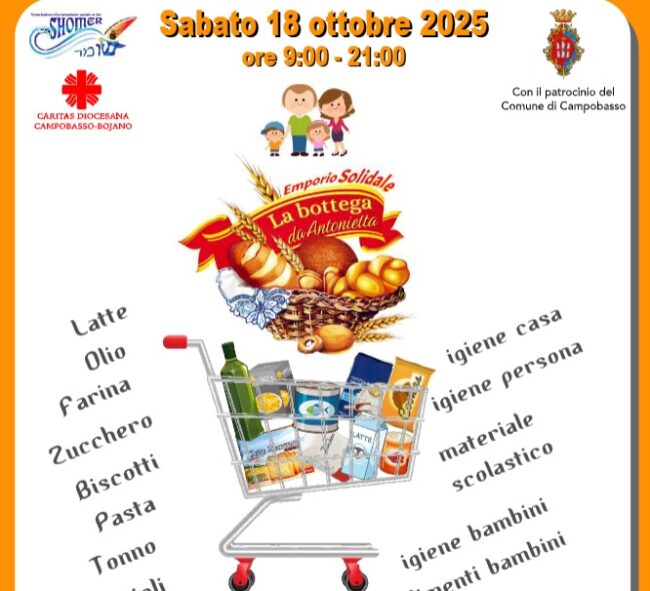 CAMPOBASSO – Anche quest’anno lo Spazio Conad presso il Centro Commerciale “Centro del Molise” ha messo a disposizione uno spazio di raccolta beni di prima necessità da destinare all’Emporio solidale “La Bottega di Antonietta”. aperto presso la Casa degli Angeli grazie alla collaborazione tra Caritas Diocesana di Campobasso–Bojano e Comune di Campobasso.