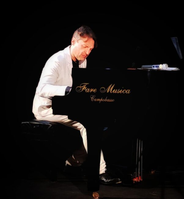 CASACALENDA – Successo ieri sera per “Note di Fine Anno” con Simone Sala al cinema teatro Flavio Bucci di Casacalenda. Il concerto è stata un’esperienza che ha toccato l’anima di tutti i presenti. Simone Sala non è solo un pianista di straordinario talento tecnico e di rara sensibilità interpretativa, ma è anche un eccezionale intrattenitore che sa parlare al cuore del pubblico. Con la sua capacità unica di raccontare la musica, di svelare i segreti nascosti tra le note e di coinvolgere gli spettatori con aneddoti affascinanti, ha reso lo spettacolo un viaggio emozionante, toccante e, allo stesso tempo, piacevolmente divertente.